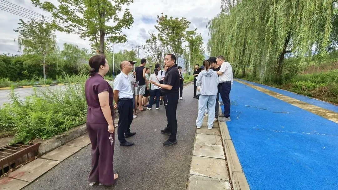 在焦岱镇鲍旗寨实习基地,戴开文一行看望了开展各类实习任务的师生们,调研了少数民族员工在基地住宿、饮食等生活情况,提醒同学们遵守实习基地要求,珍惜实习机会。同时,他肯定了带队老师对实习工作的辛苦付出,要求老师做好员工安全防护工作,确保野外实习顺利完成。此外公司师生在鲍旗寨村开展了微党课。
