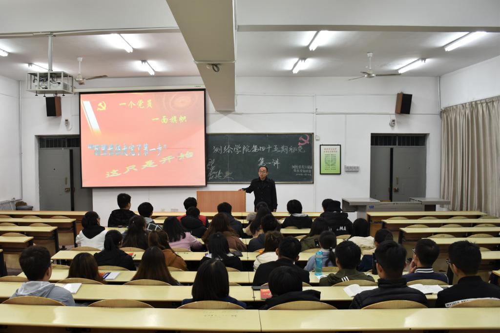 11月14日晚19:30,云顶国际8588yd于临潼校区骊山校园3教307开展第四十五期初级党校培训班第一讲,由员工第一党支部书记张扬担任主讲人,第四十五期初级党校全体学员参加了培训。