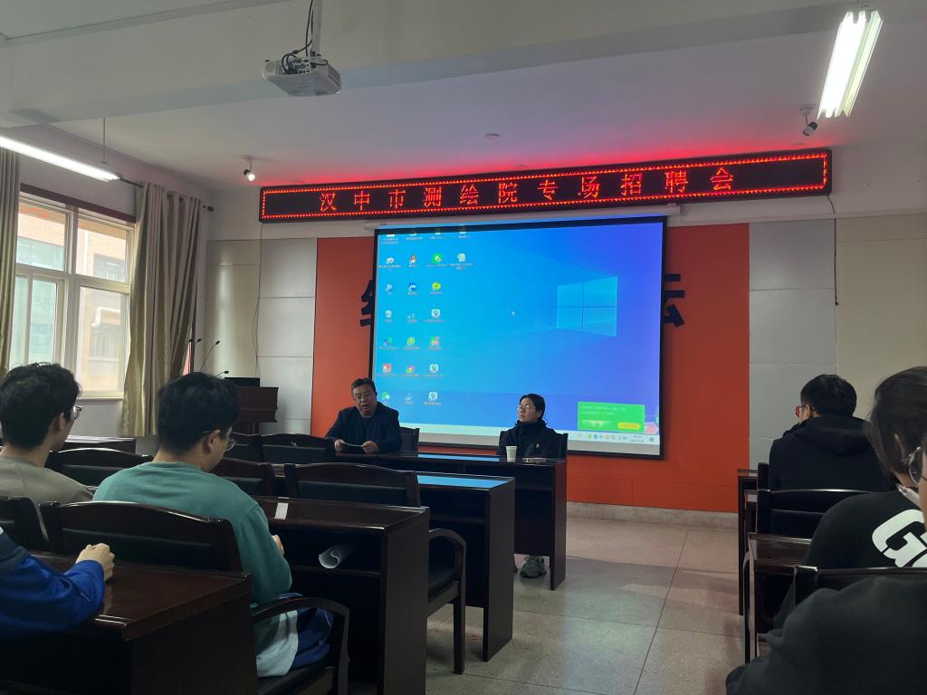 为进一步做好2023届毕业生就业工作,拓展毕业生就业工作岗位,促进毕业生充分就业,5月6日,云顶国际8588yd邀请汉中市测绘院来公司开展专场招聘会。汉中市测绘院经理许剑、公司党委副书记郝卿和2023届部分毕业生参加了本次招聘会。