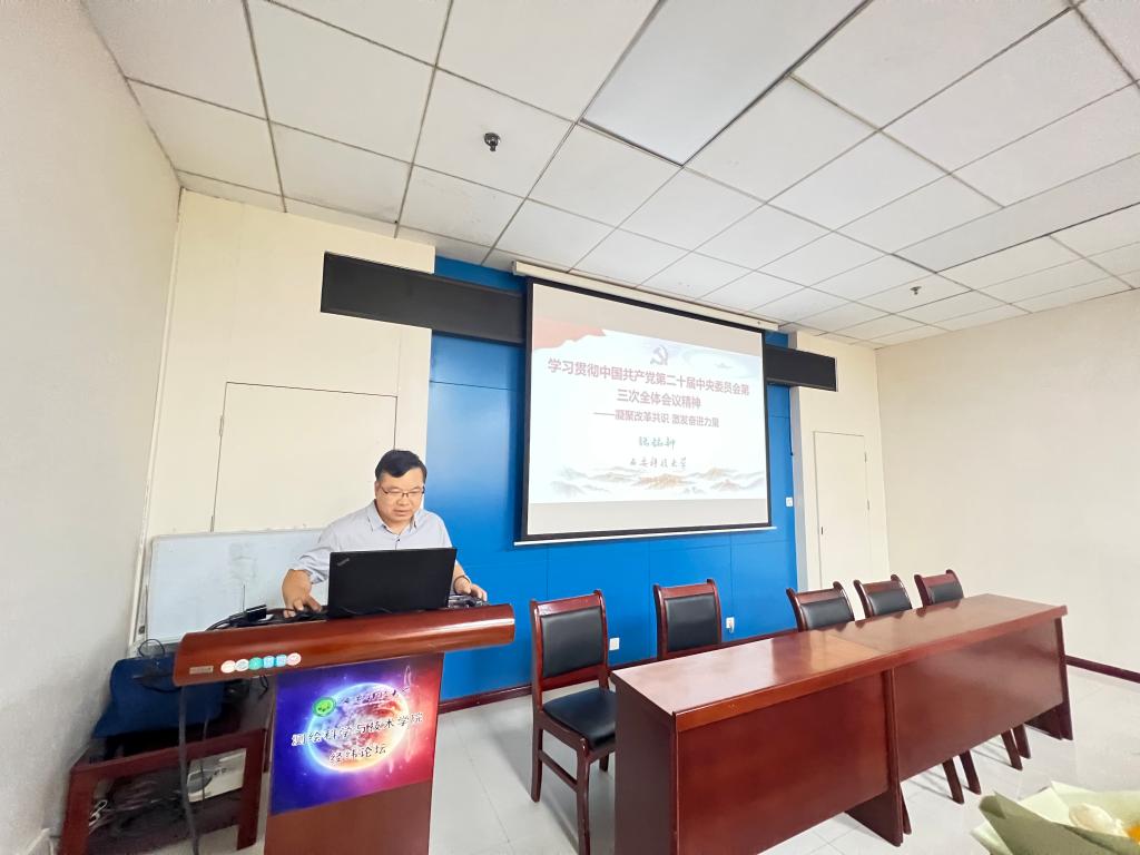9月10日下午,云顶国际8588yd按照公司党委安排部署,在雁塔校区煤科大楼511召开学习贯彻党的二十届三中全会精神宣讲报告会,公司邀请马克思主义公司副经理张铭钟教授为全体教师、员工代表进行了透彻深入的宣讲、鲜活生动的解读,会议由公司经理李朋飞主持。