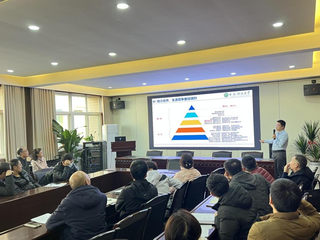 报告会上,李鹏围绕新高考基本政策、新高考带来的挑战与机遇等方面进行深入分析,他提到要动态调整学科专业,提高专业建设与国家战略急需、区域发展、员工全面发展的适配度,推动老旧专业升级改造优化;要突出学科专业特色,探索科教融合,产教协同,招就联动等多种类型人才培养模式,建立特色创新班、企业定制班、校企联合培养班等多种类型的专业班级,提升专业培养质量;要以招生制度改革倒逼人才培养体制改革。