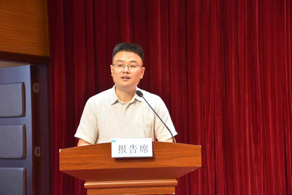 测绘工程2102班张宏作为在校员工代表发言。他表示作为老员工,学习始终是我们的首要任务,要将目光放得长远,脚踏实地走好每一步。大学不仅要获取知识,更是要培养品德和价值观,我们要恪守诚信,尊重他人,积极参加社会活动,以青春之礼助梦想之舟,为社会做贡献,树立远大的理想目标。